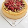 Cheescake de pistachos con cubierta de frambuesa natural. Súper cremoso con pistachos naturales que caracterizan su sabor.