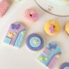 6 (SEIS) cookies GRANDES temáticas decoradas en pasta americana según temática de la torta principal, misma línea de colores y decoraciones.-